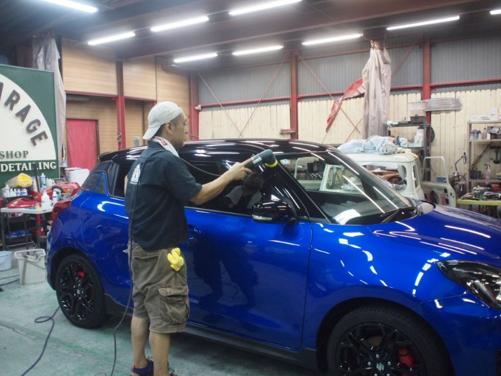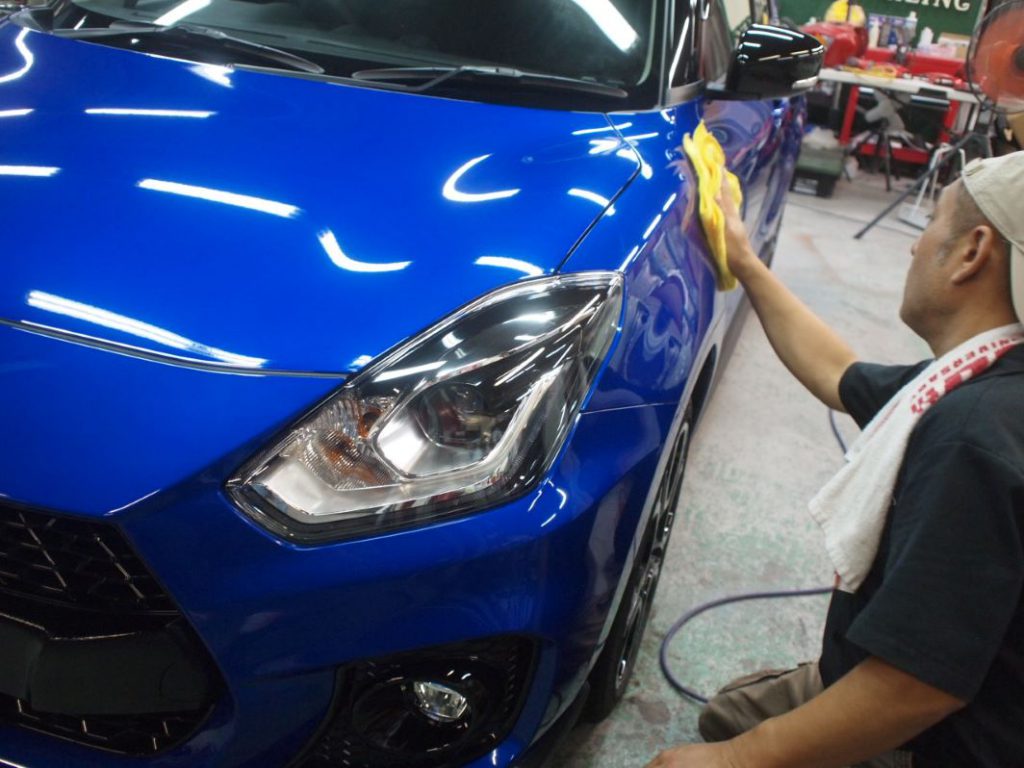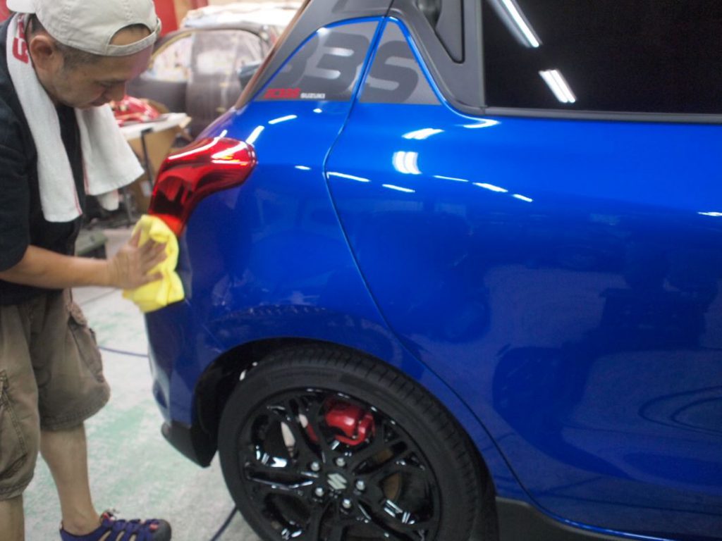 SUZUKI SWIFT SPORT ボディーコーティング 2025/09/22 コーティングのご依頼をいただきました。 磨き前の洗車の様子。 磨きの様子。 磨き後の洗車の様子。 コーティング作業の様子。 今回はシリカコートです。 仕上がりの様子。 ご依頼いただきありがとうございました。