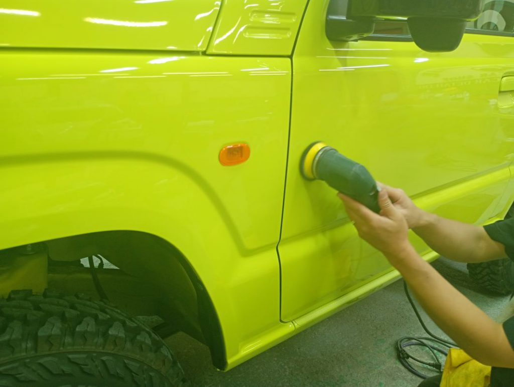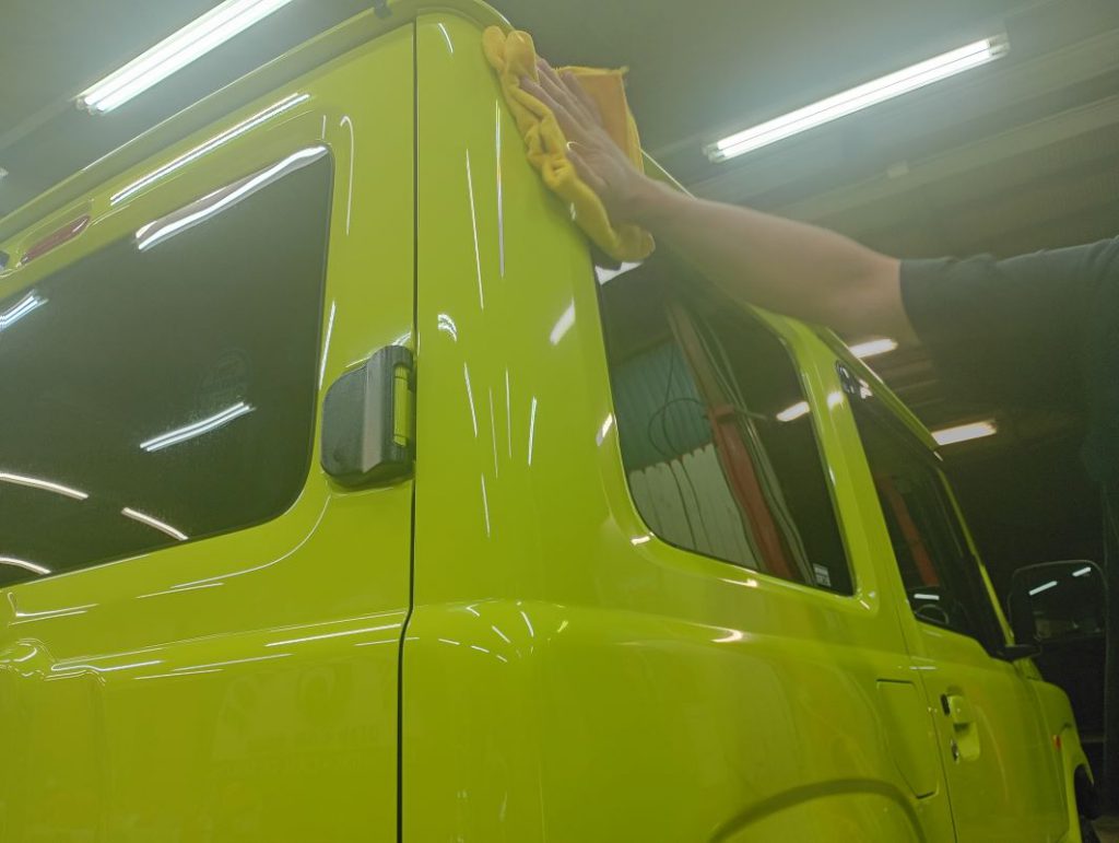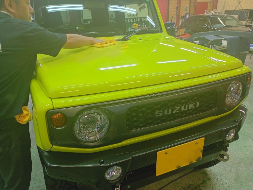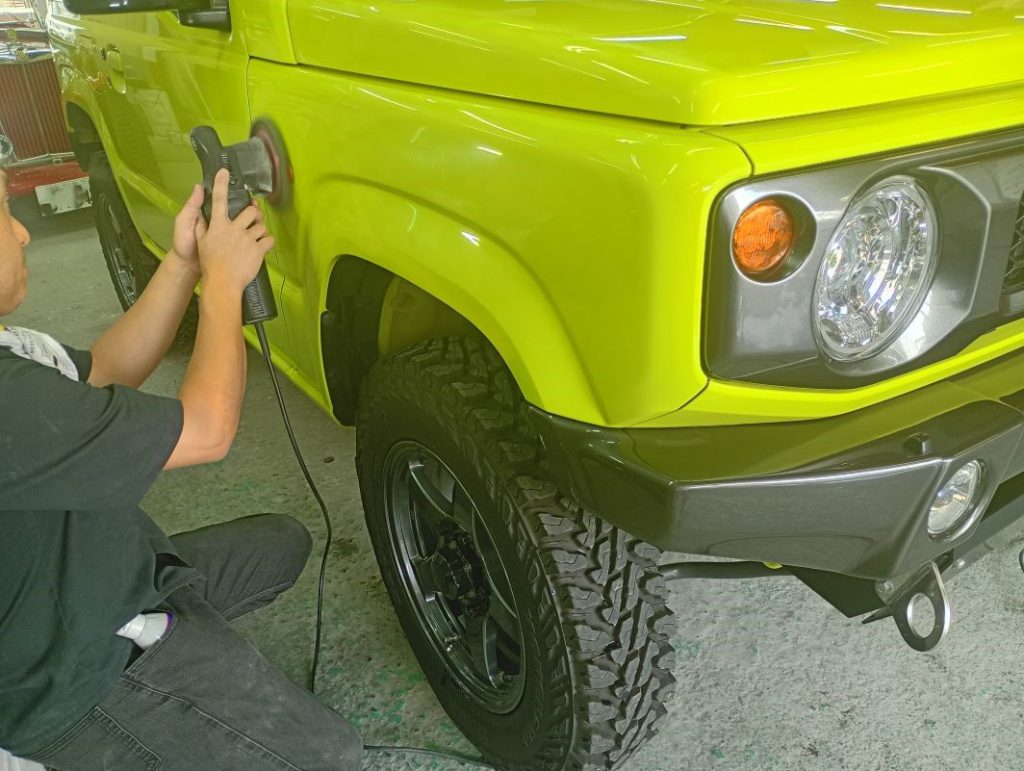SUZUKI JIMNY ボディーコーティングメンテナンス 2025/10/07 コーティングのメンテナンスをご依頼いただきました。 作業前の洗車の様子。 磨きの様子。 磨き後の洗車の様子。 コーティング作業の様子。 今回はシリカコートです。 仕上がりの様子。 ご依頼いただきありがとうございました。