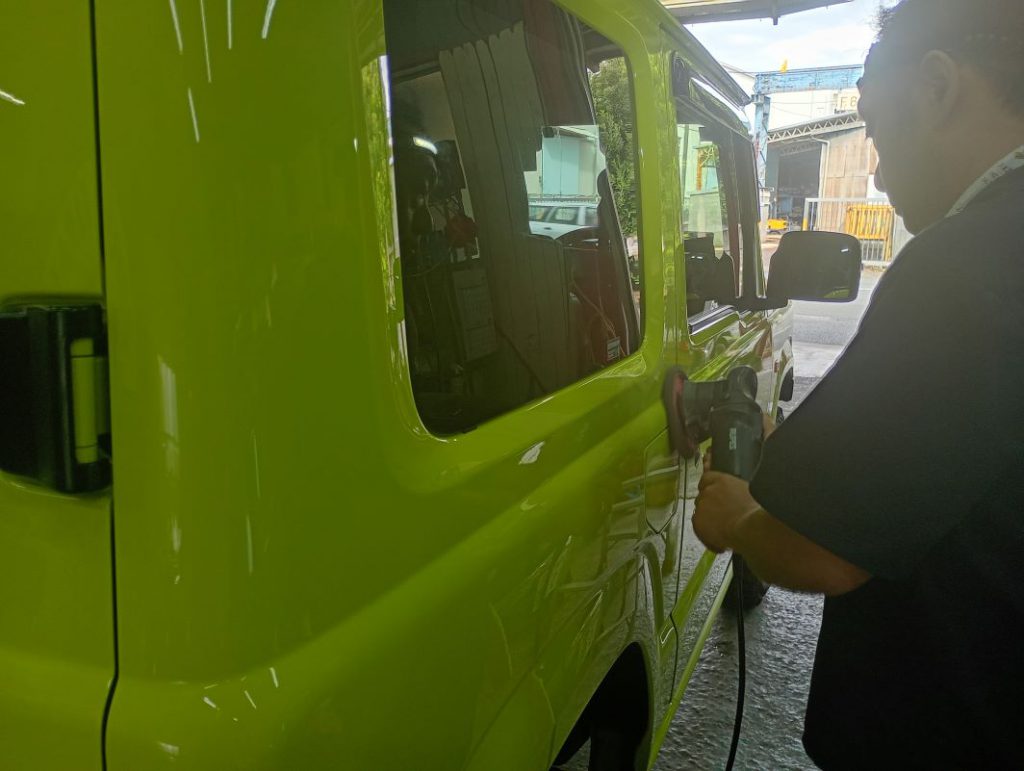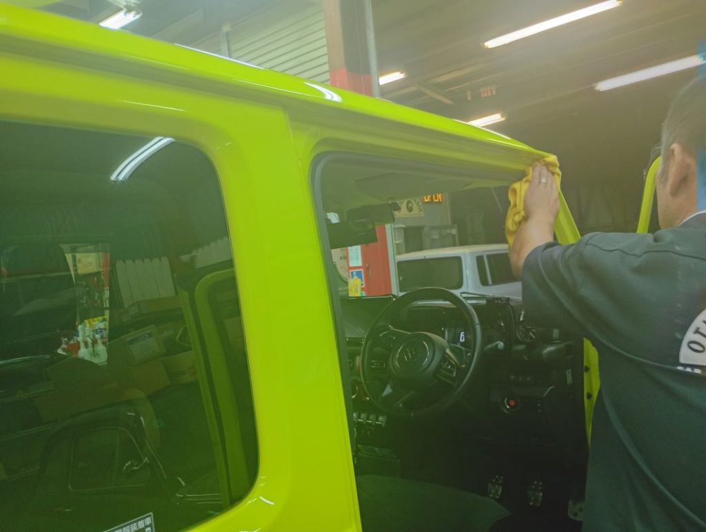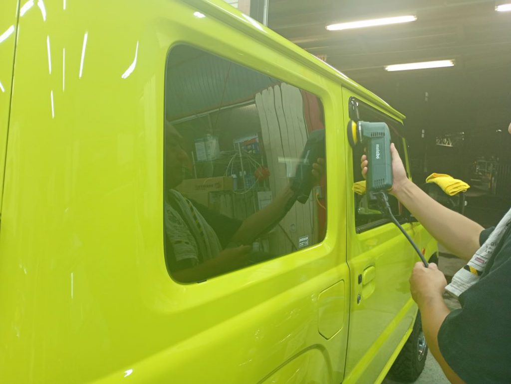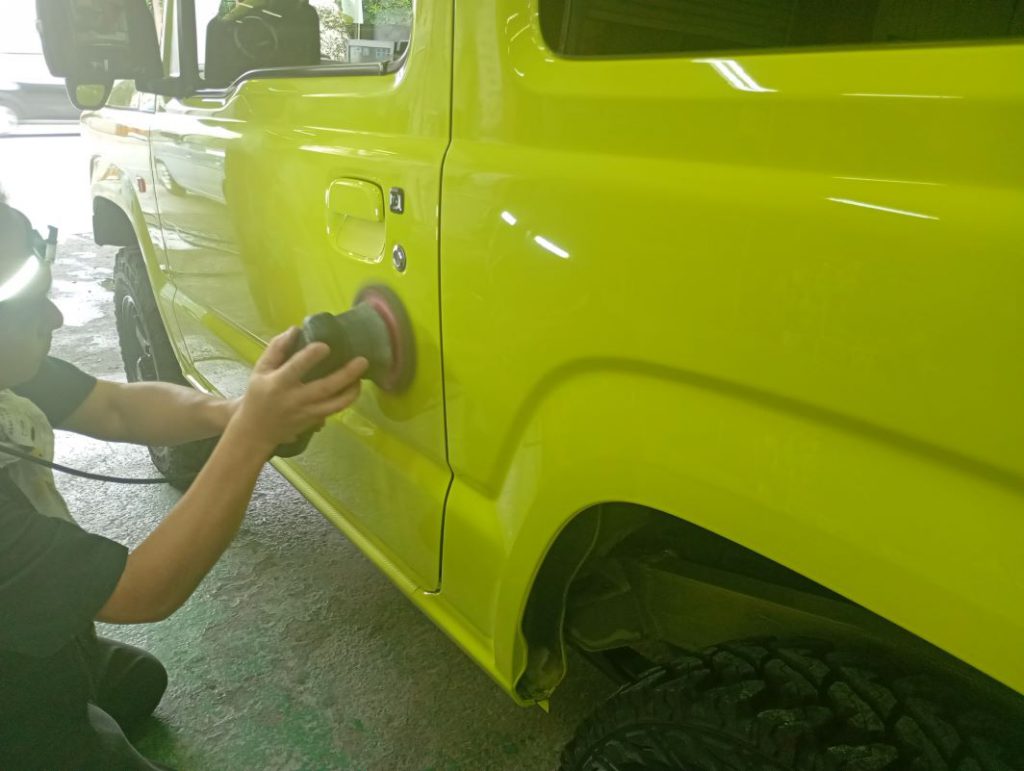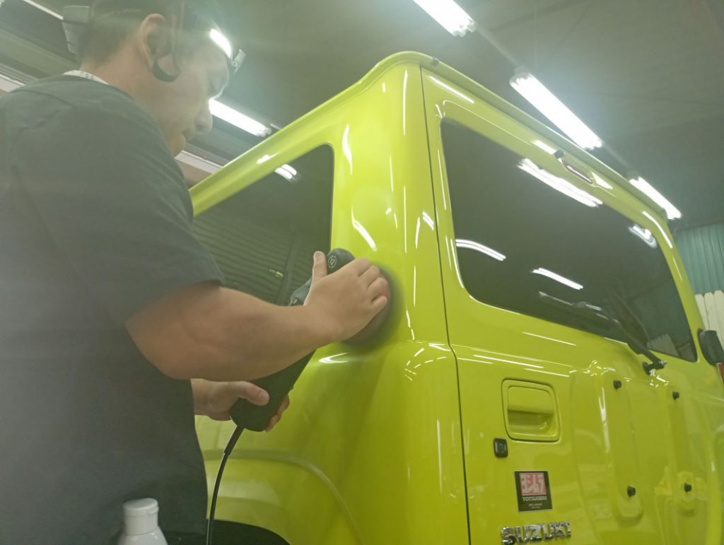 SUZUKI JIMNY ボディーコーティングメンテナンス 2025/10/07 コーティングのメンテナンスをご依頼いただきました。 作業前の洗車の様子。 磨きの様子。 磨き後の洗車の様子。 コーティング作業の様子。 今回はシリカコートです。 仕上がりの様子。 ご依頼いただきありがとうございました。