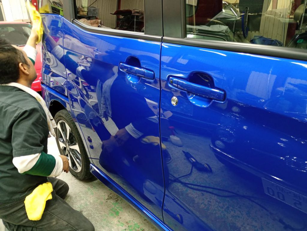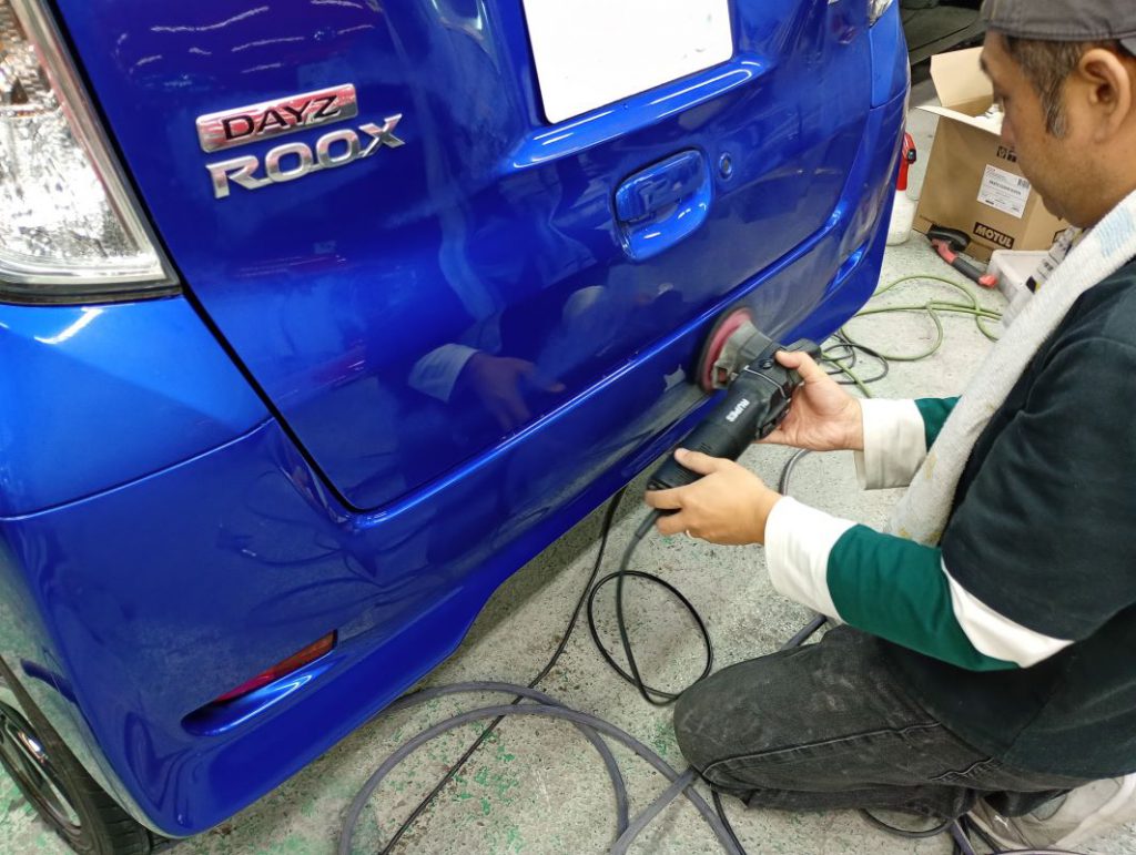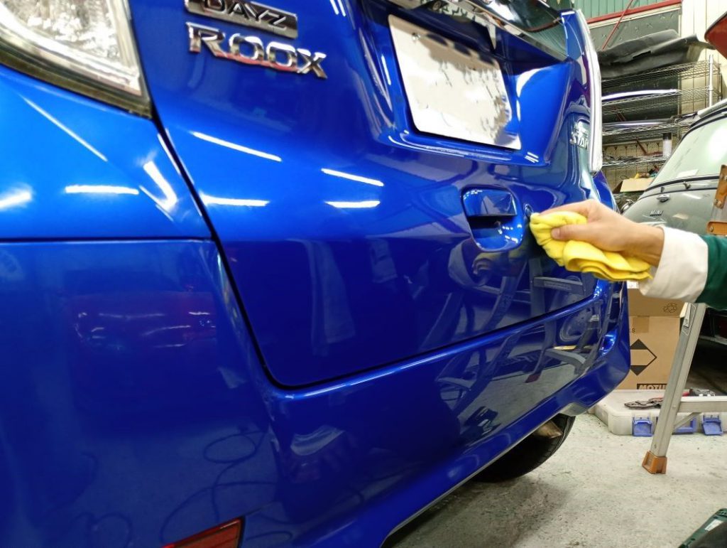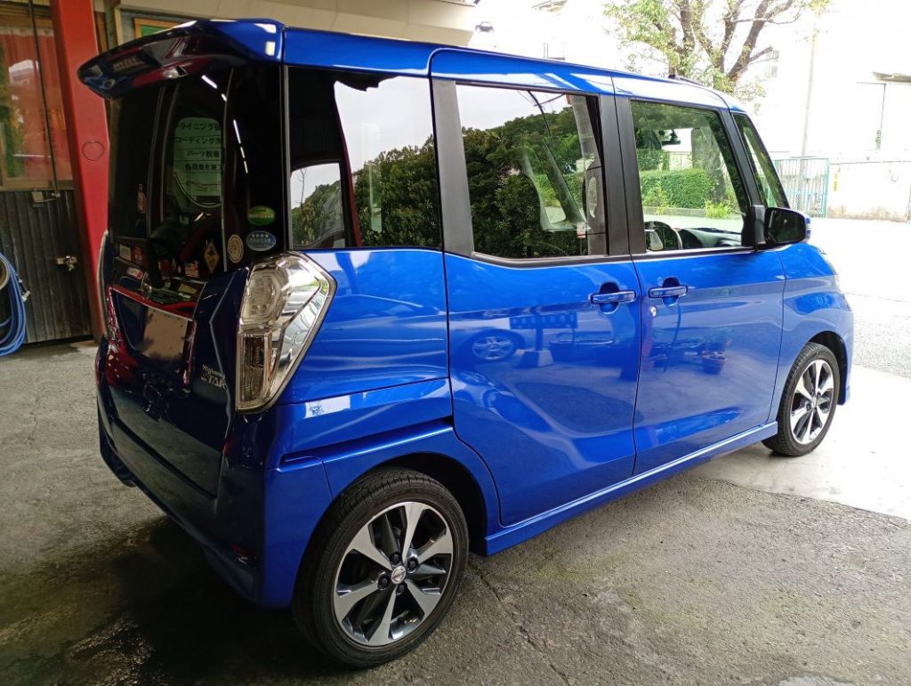 NISSAN DAYZ ROOX ボディーコーティングメンテナンス施工 2025/10/22 コーティングのメンテナンスをご依頼いただきました。 磨き前の洗車の様子。 磨きの様子。 磨き後の洗車の様子。 コーティング作業の様子。 今回はシリカコートです。 仕上がりの様子。 ご依頼いただきありがとうございました。