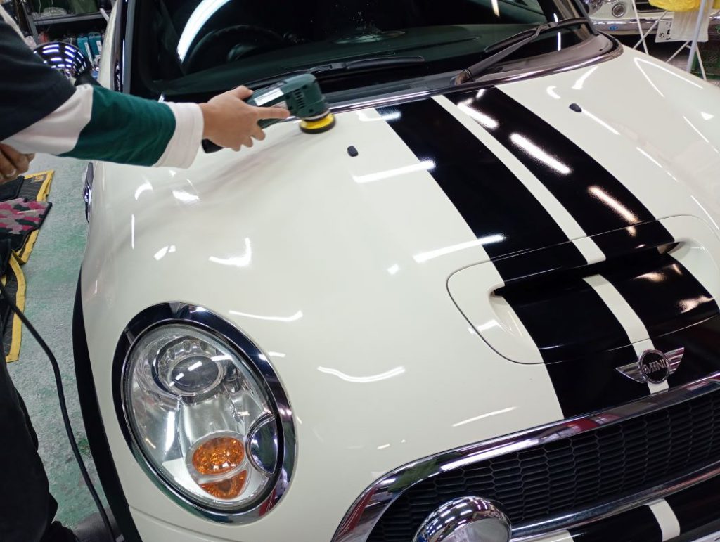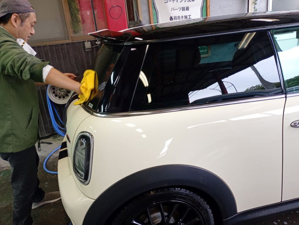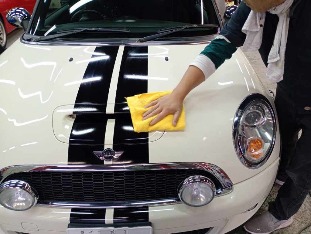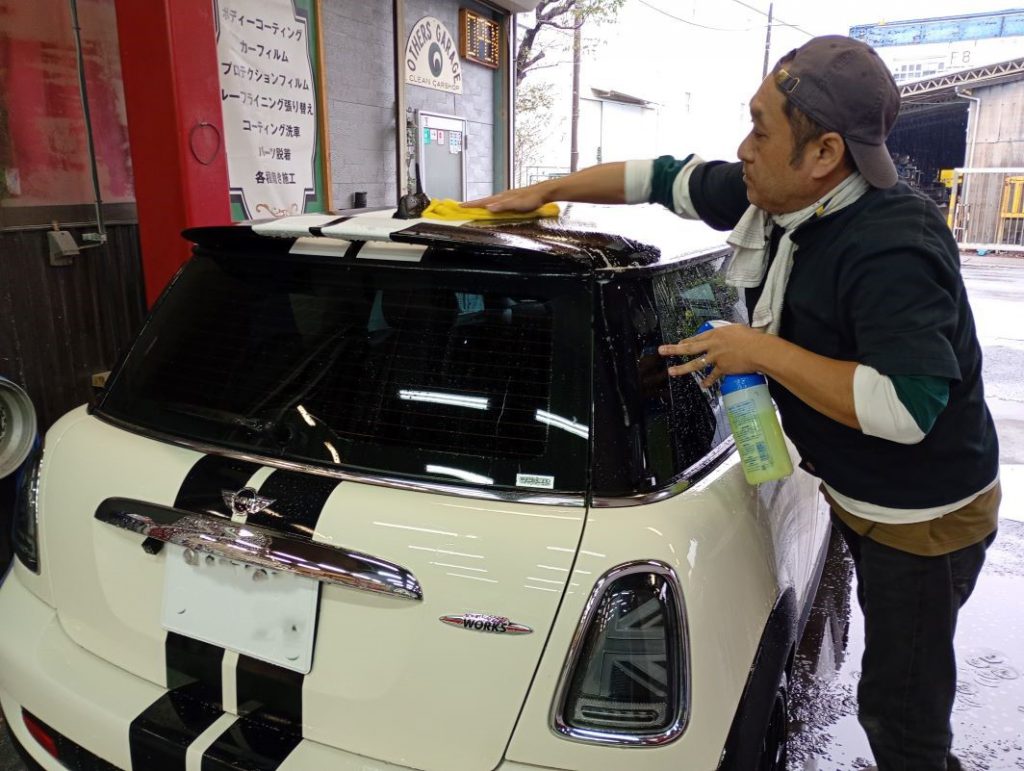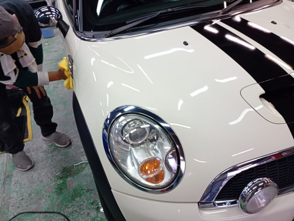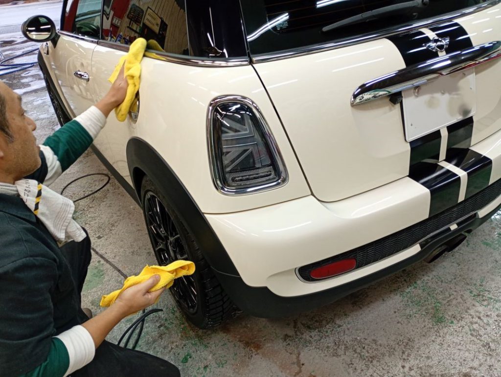 MINI JOHN COOPER WORKS ボディーコーティングメンテナンス施工 2025/10/24 コーティングのメンテナンスをご依頼いただきました。 磨き前の洗車の様子。 磨きの様子。 磨き後の洗車の様子。 コーティング作業の様子。 今回はシリカコートです。 仕上がりの様子。 ご依頼いただきありがとうございました。