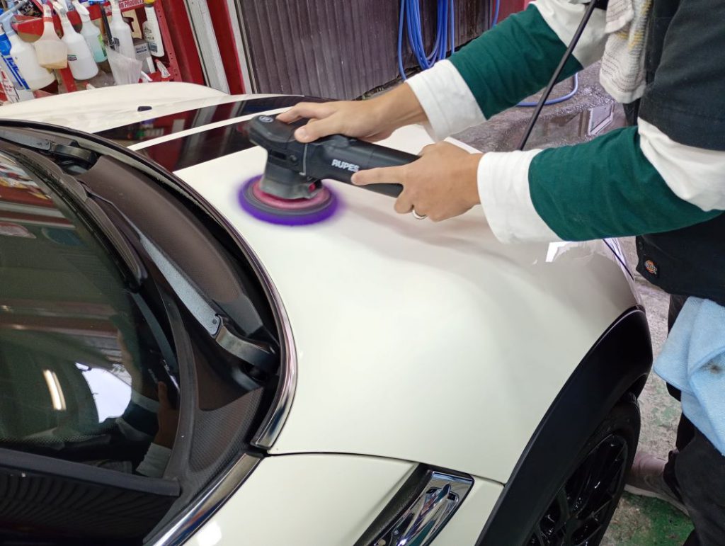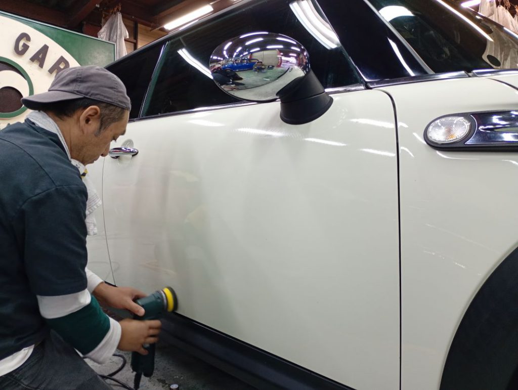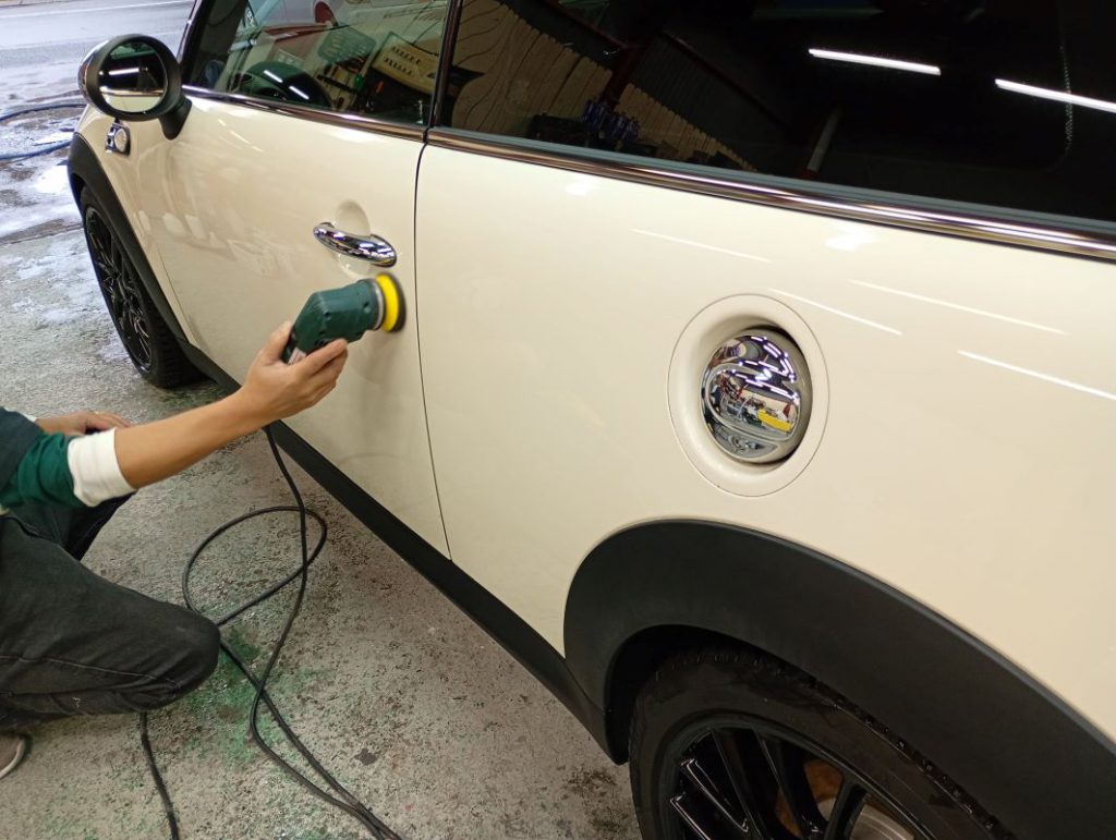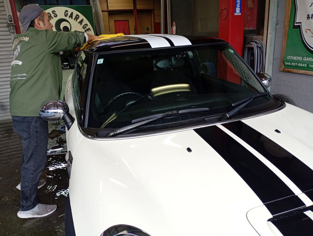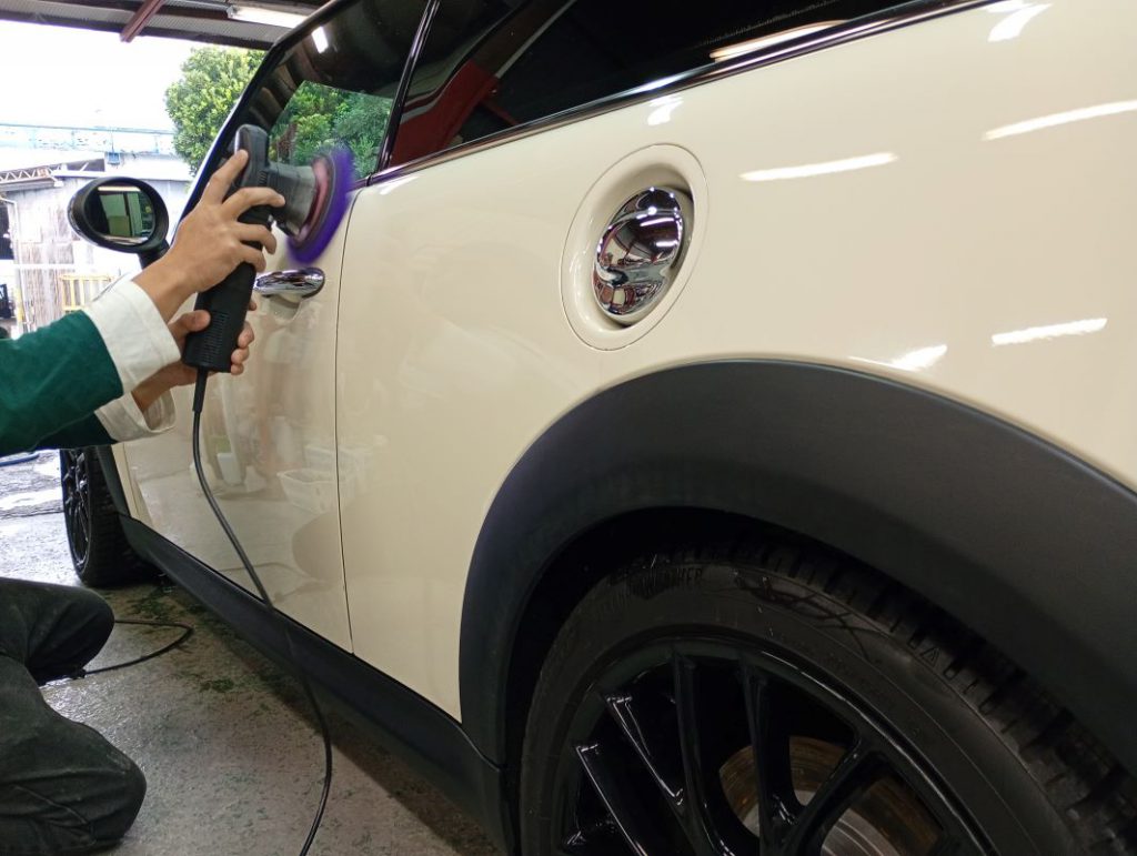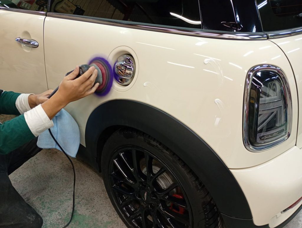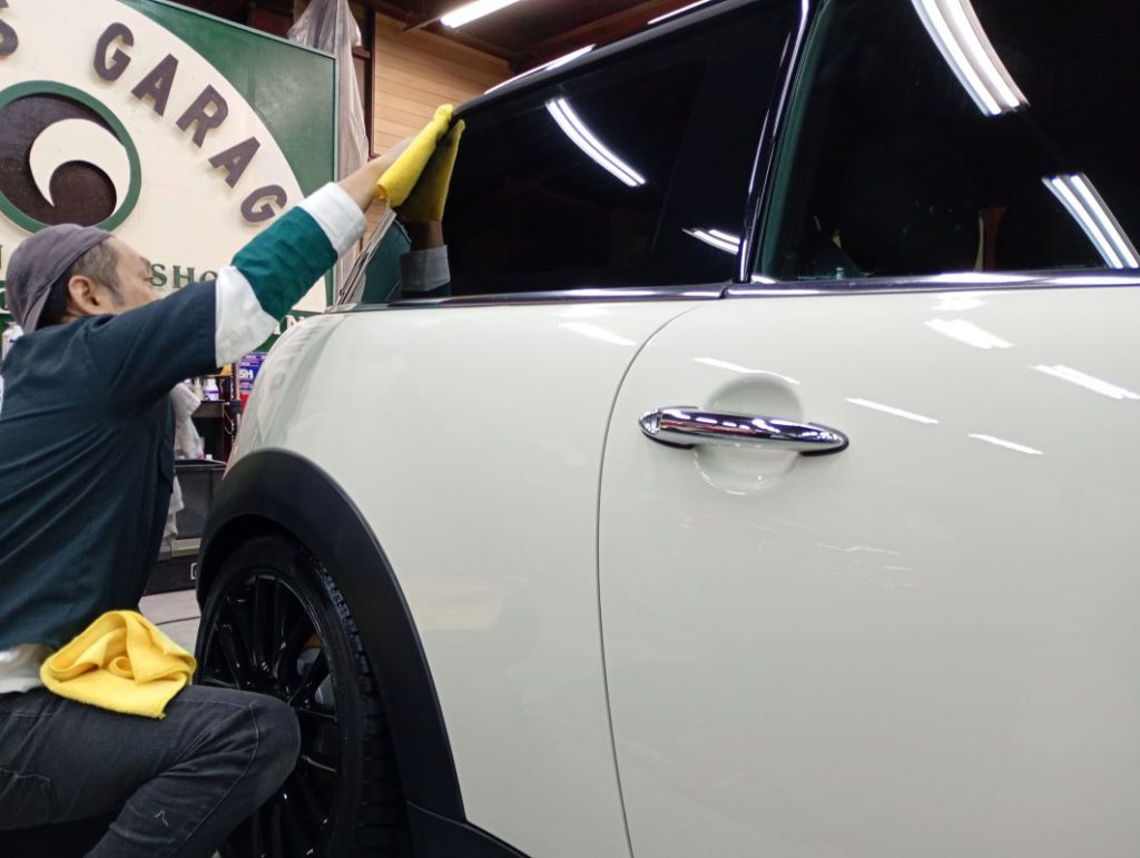 MINI JOHN COOPER WORKS ボディーコーティングメンテナンス施工 2025/10/24 コーティングのメンテナンスをご依頼いただきました。 磨き前の洗車の様子。 磨きの様子。 磨き後の洗車の様子。 コーティング作業の様子。 今回はシリカコートです。 仕上がりの様子。 ご依頼いただきありがとうございました。