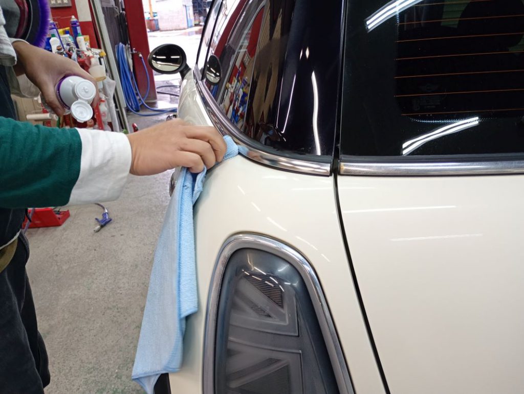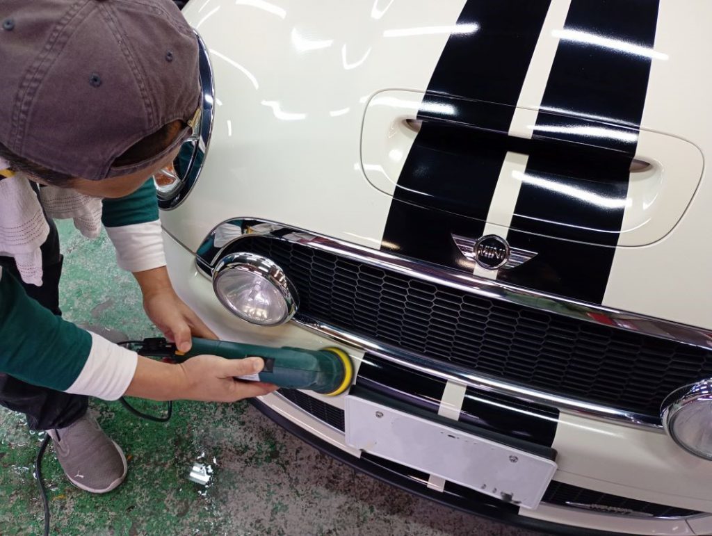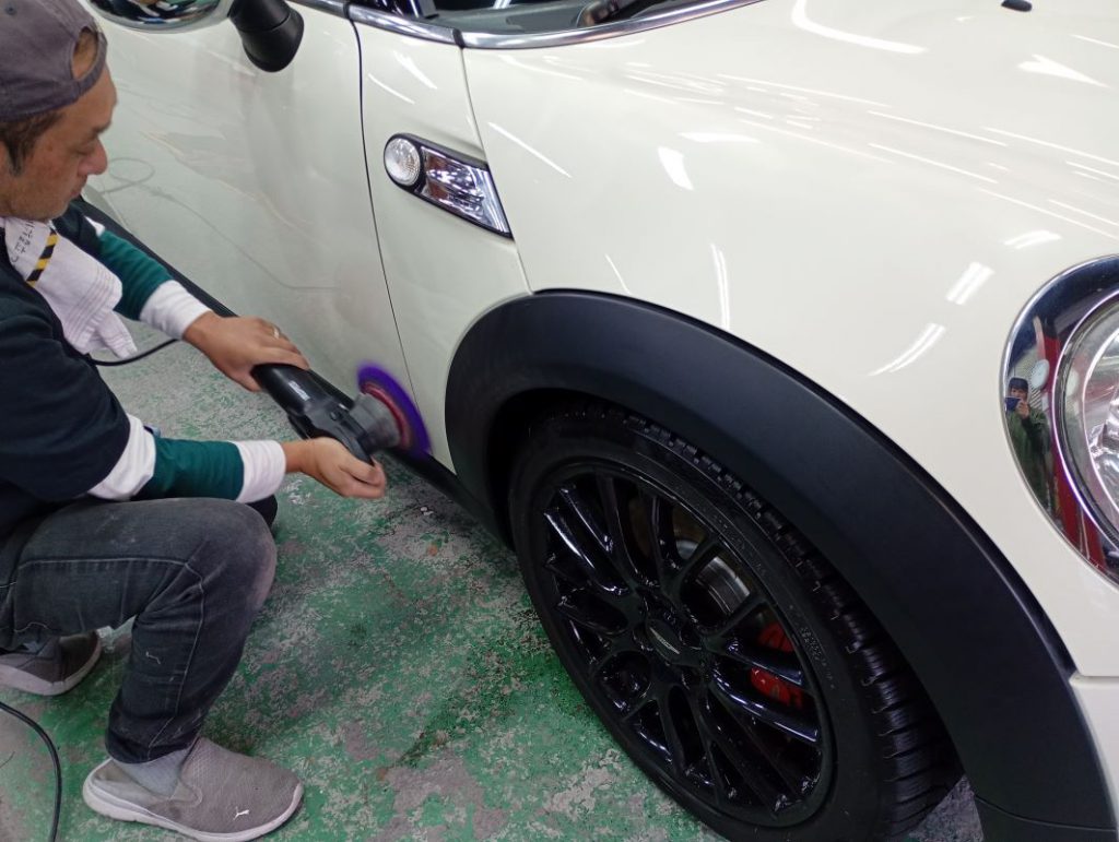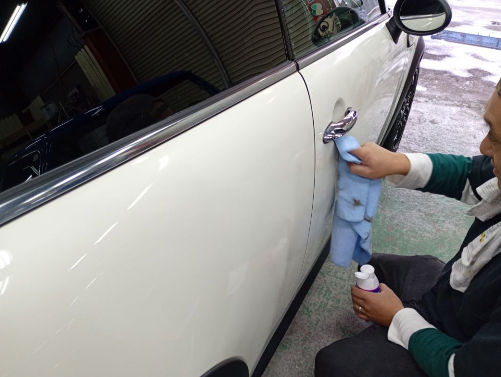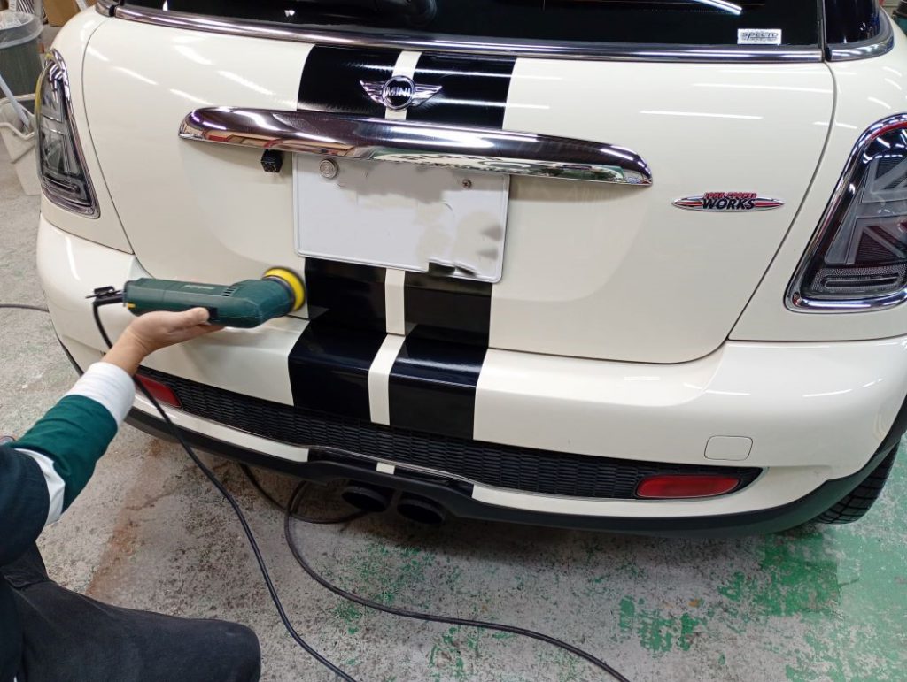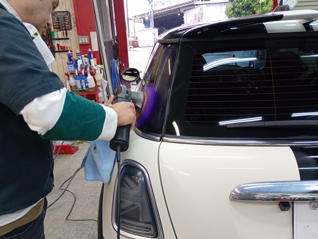 MINI JOHN COOPER WORKS ボディーコーティングメンテナンス施工 2025/10/24 コーティングのメンテナンスをご依頼いただきました。 磨き前の洗車の様子。 磨きの様子。 磨き後の洗車の様子。 コーティング作業の様子。 今回はシリカコートです。 仕上がりの様子。 ご依頼いただきありがとうございました。