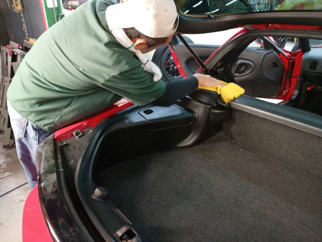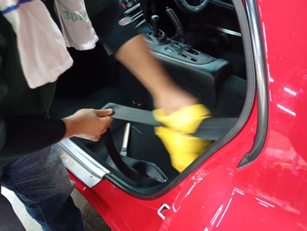 MAZDA RX-7 室内クリーニング 2025/10/28 室内クリーニングのご依頼をいただきました。 作業前の様子。 作業の様子。 仕上がりの様子。 作業後の洗車の様子。 ご依頼いただきありがとうございました。