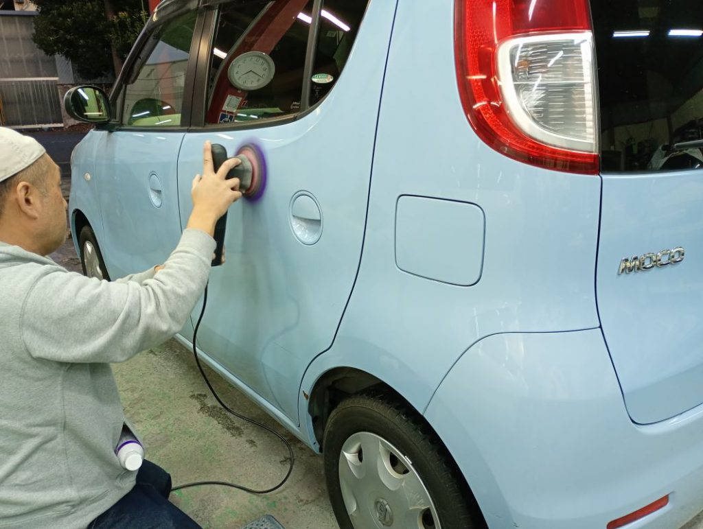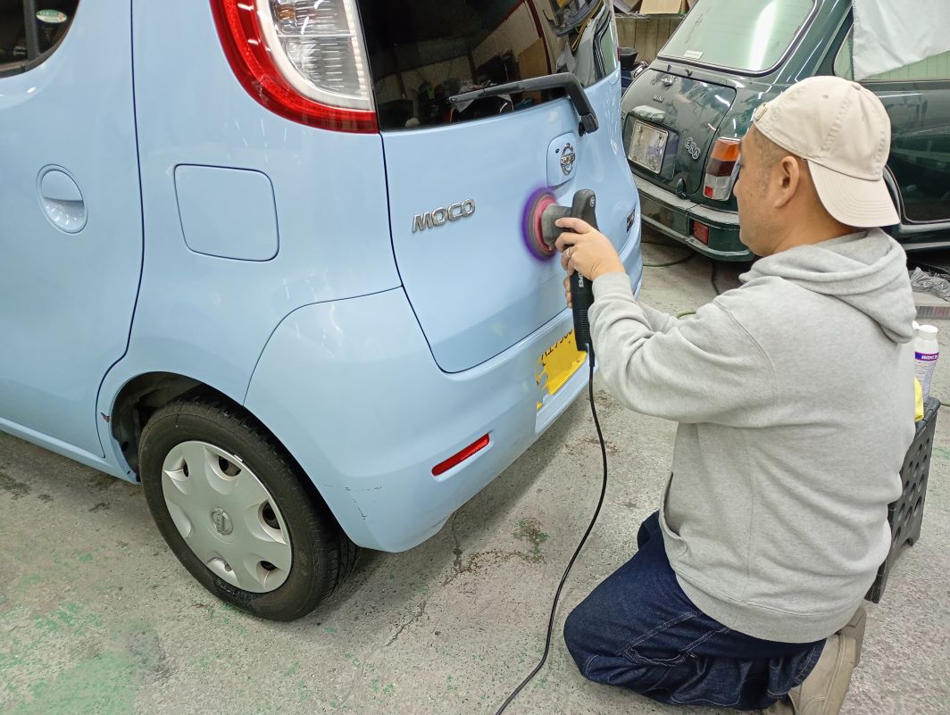 NISSAN MOCO ボディー磨き施工 2025/12/10 ボディー磨きのご依頼をいただきました。 磨き前の洗車の様子。 磨きの様子。 磨き後の洗車と作業の様子。 仕上がりの様子。 ご依頼いただきありがとうございました。 作業のご相談と共にいただきました。いつもお気遣いありがとうございます。 パッケージもかわいかったので記録に。