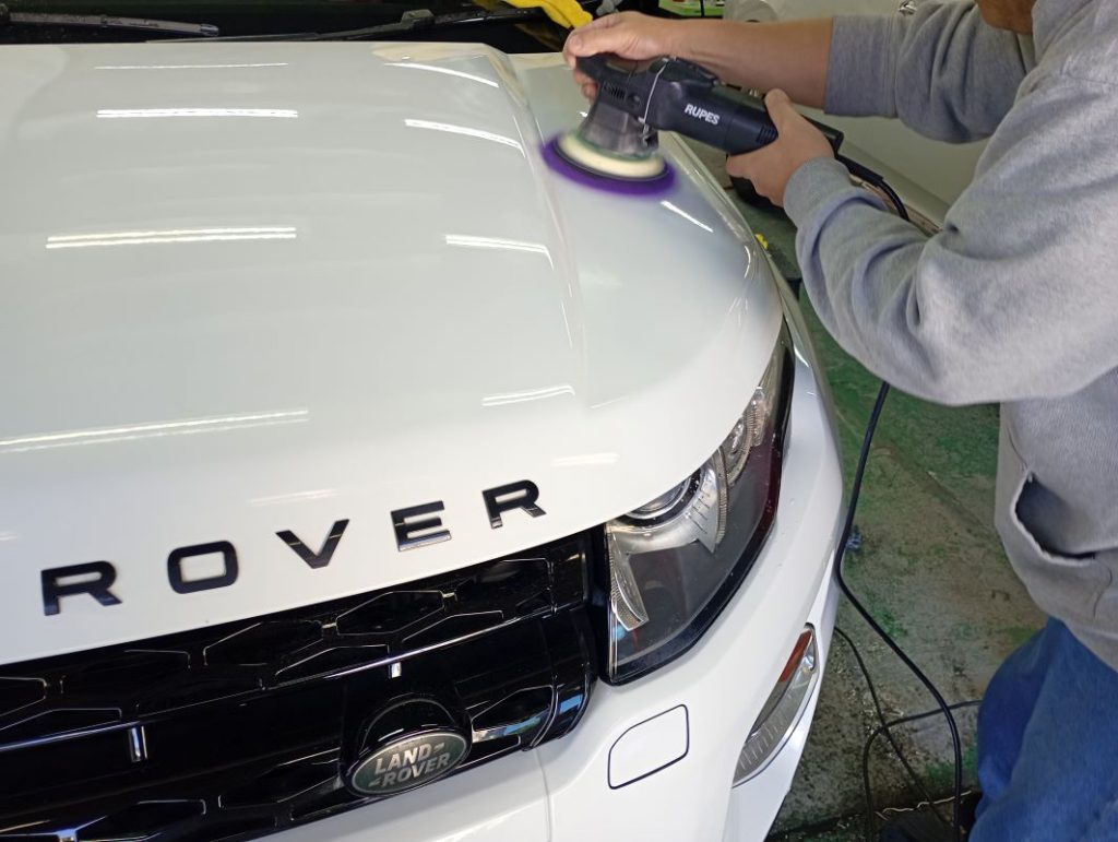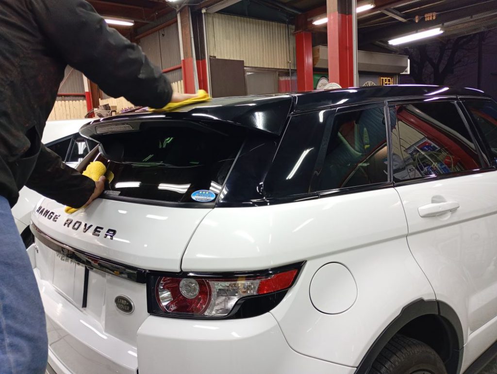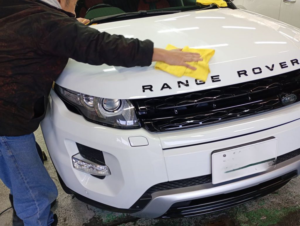 RANGE ROVER EVOQUE ボディーコーティングメンテナンス 2025/12/29 コーティングのメンテナンスをご依頼いただきました。 磨き前の洗車の様子。 磨きの様子。 磨き後の洗車の様子。 コーティング作業の様子。 仕上がりの様子。 ご依頼いただきありがとうございました。 お気遣いいただきありがとうございます。