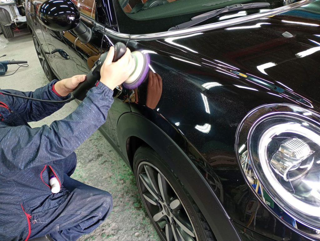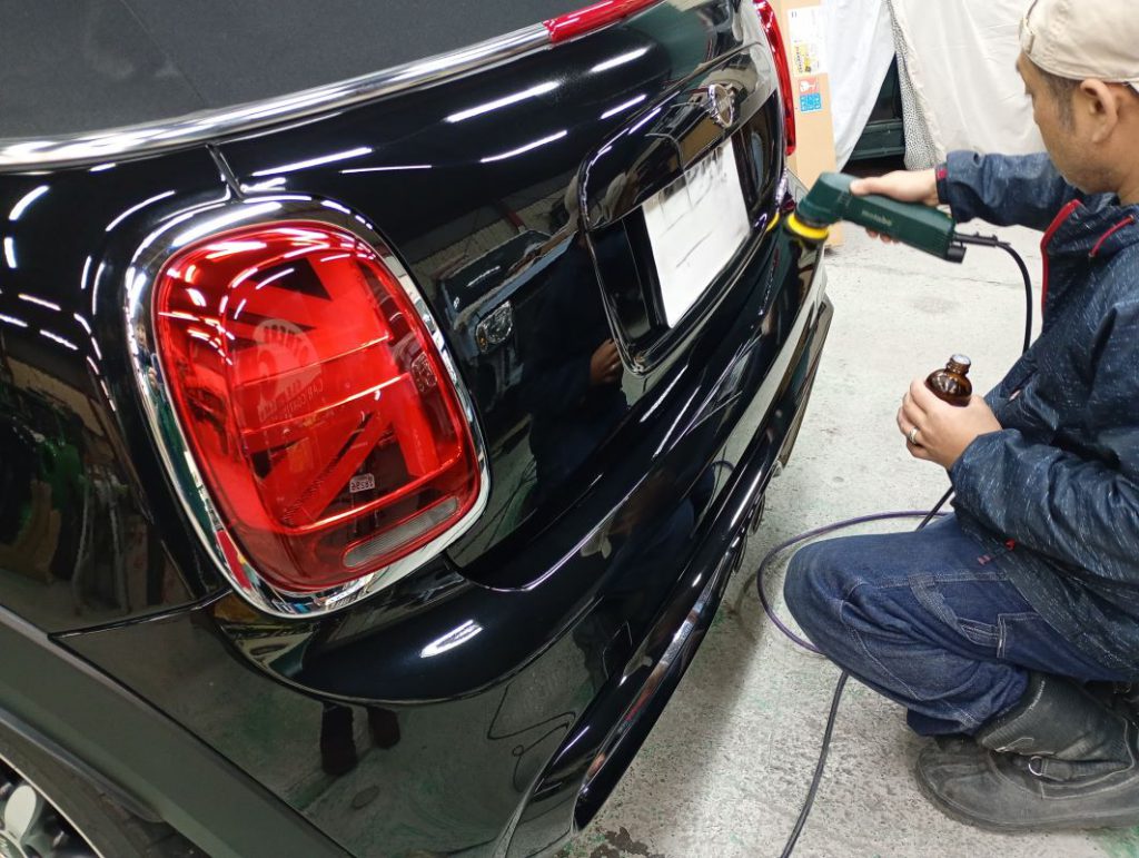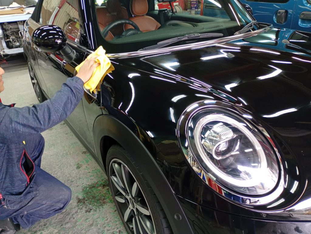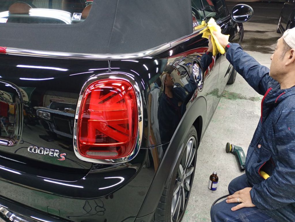 MINI COOPER S CONVERTIBLE ボディーコーティング施工 2026/02/23 ボディーコーティングのご依頼をいただきました。 作業前の洗車の様子。 磨きの様子。 磨き後の洗車の様子。 コーティング作業の様子。 仕上がりの様子。 ご依頼いただきありがとうございました。