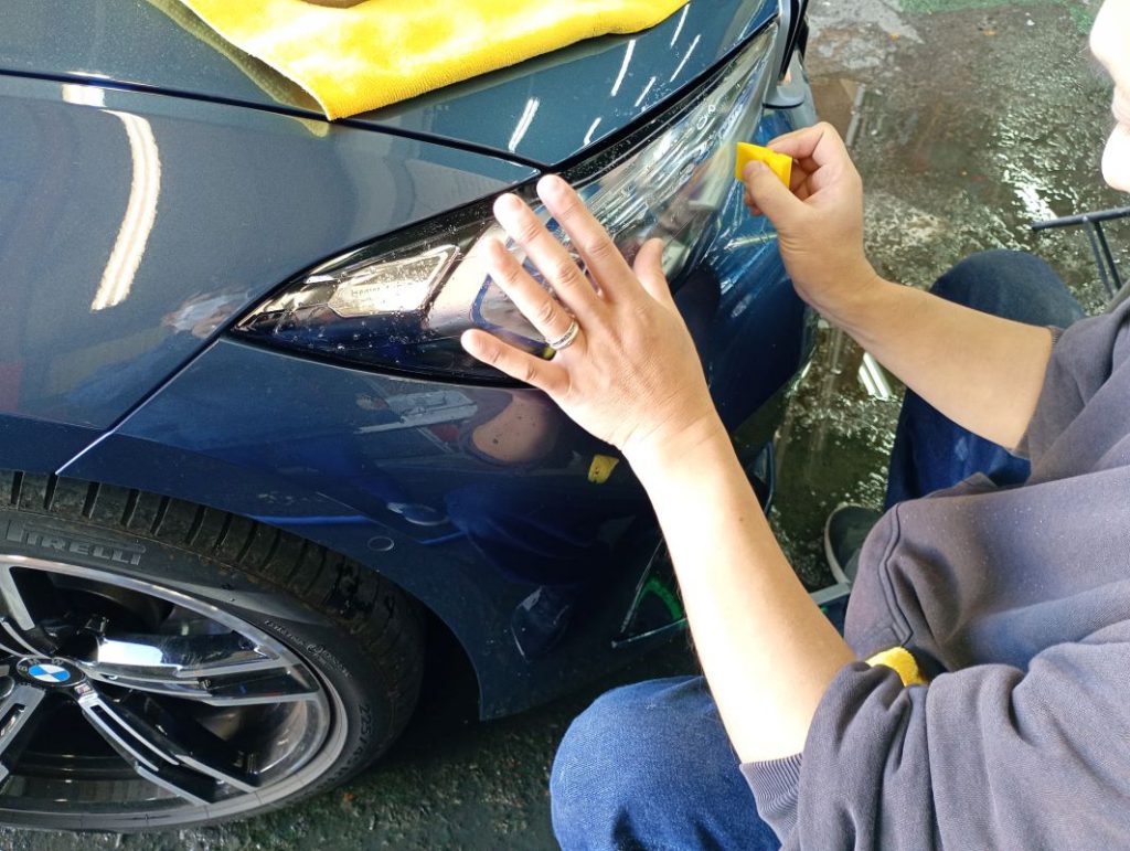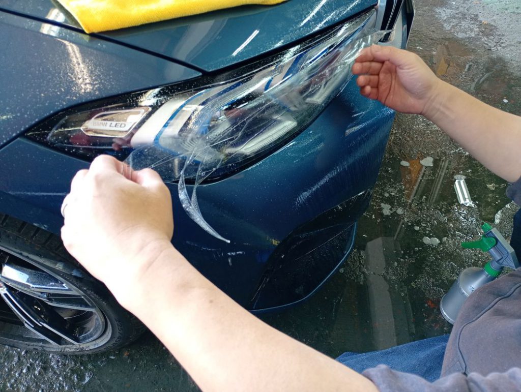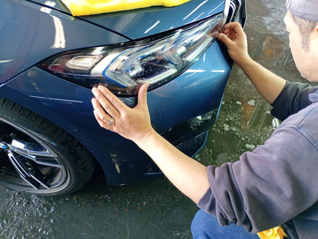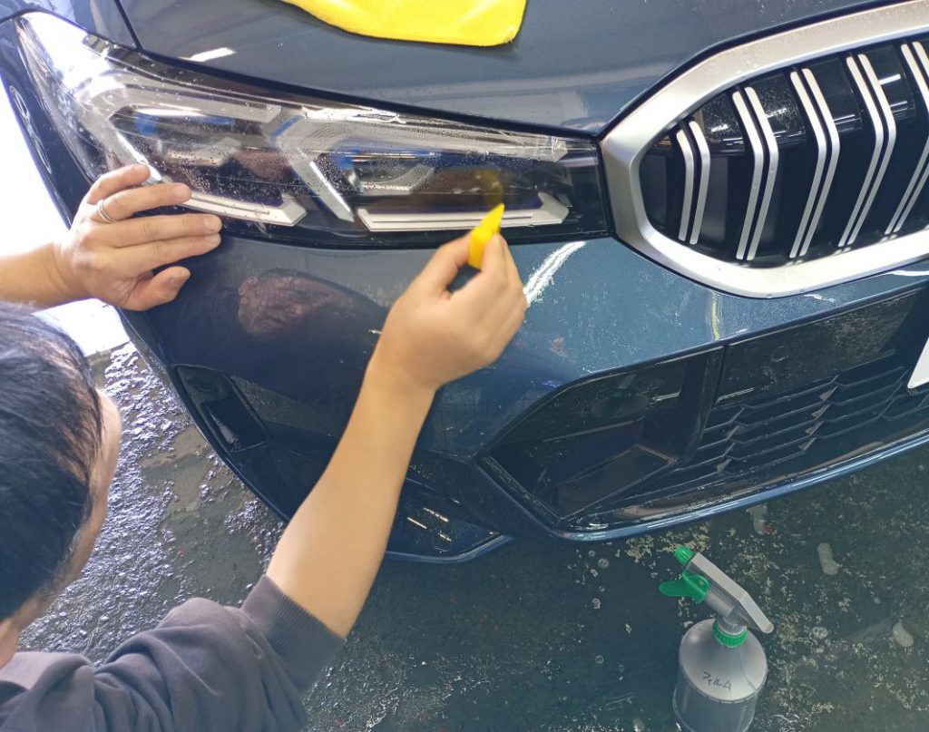 BMW 320i プロテクションフィルム施工 2026/03/01 ヘッドライトのプロテクションフィルム施工をご依頼いただきました。 作業前の様子。 作業の様子。 仕上がりの様子。 作業後の洗車の様子。 ご依頼いただきありがとうございました。 いつもお気遣いありがとうございます。 作業のご依頼と差入れありがとうございございました。