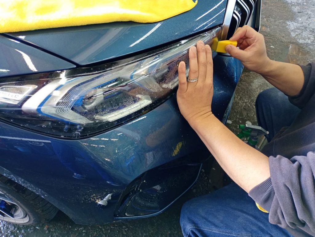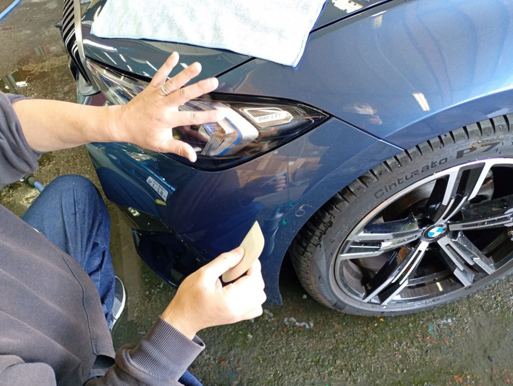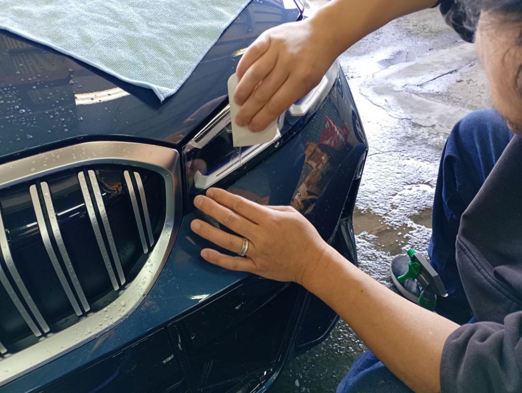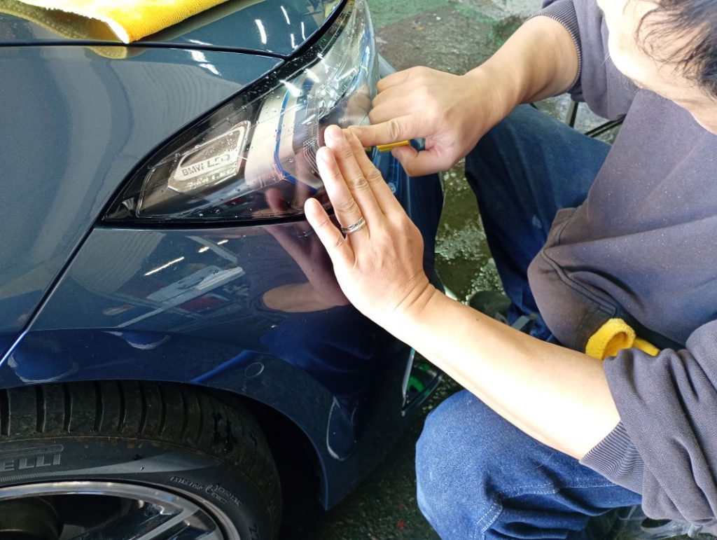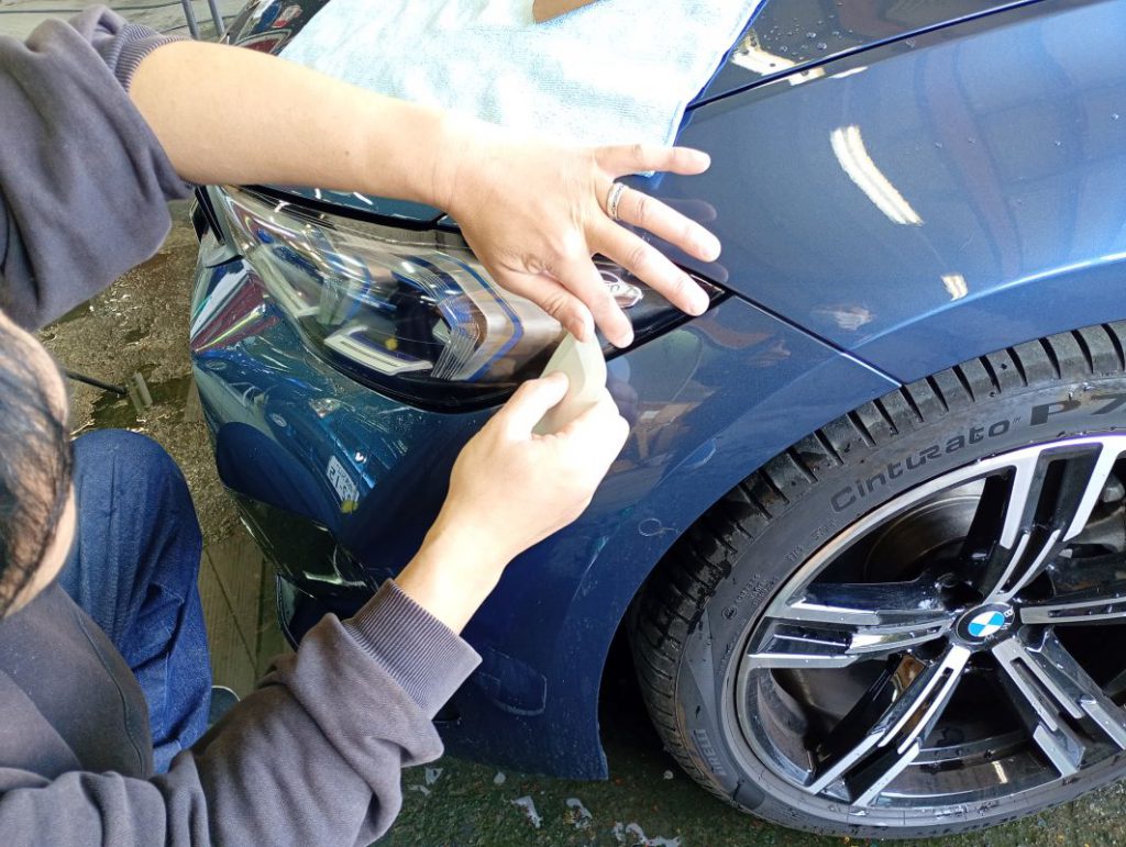 BMW 320i プロテクションフィルム施工 2026/03/01 ヘッドライトのプロテクションフィルム施工をご依頼いただきました。 作業前の様子。 作業の様子。 仕上がりの様子。 作業後の洗車の様子。 ご依頼いただきありがとうございました。 いつもお気遣いありがとうございます。 作業のご依頼と差入れありがとうございございました。