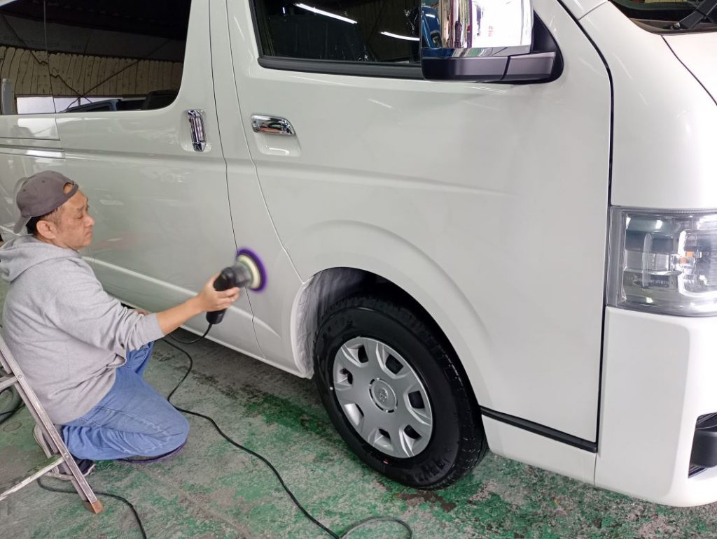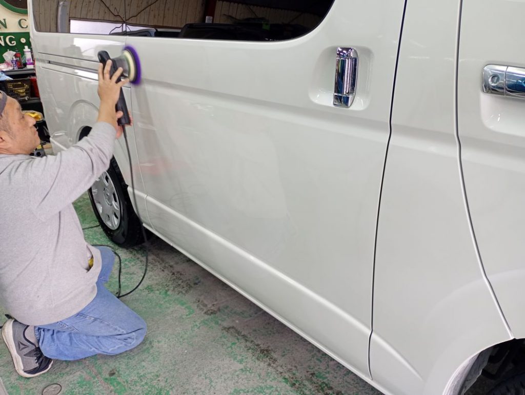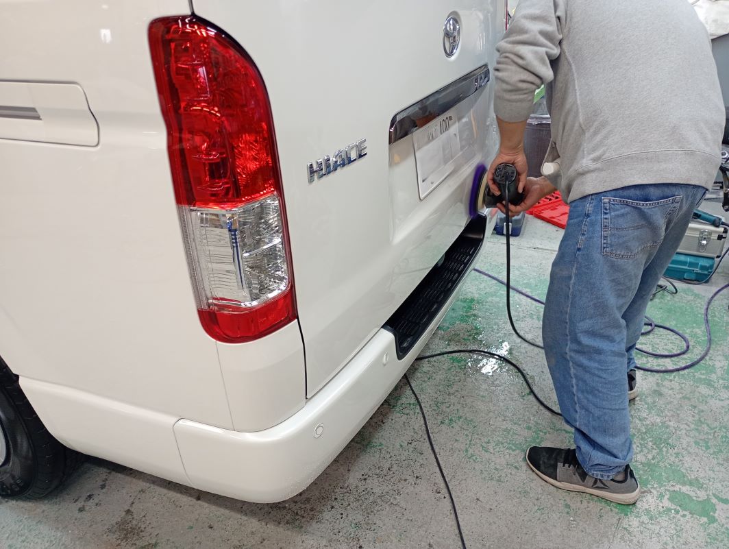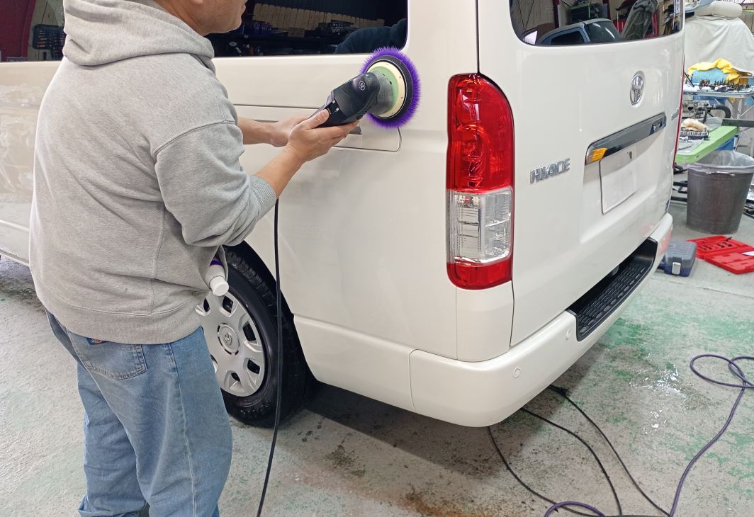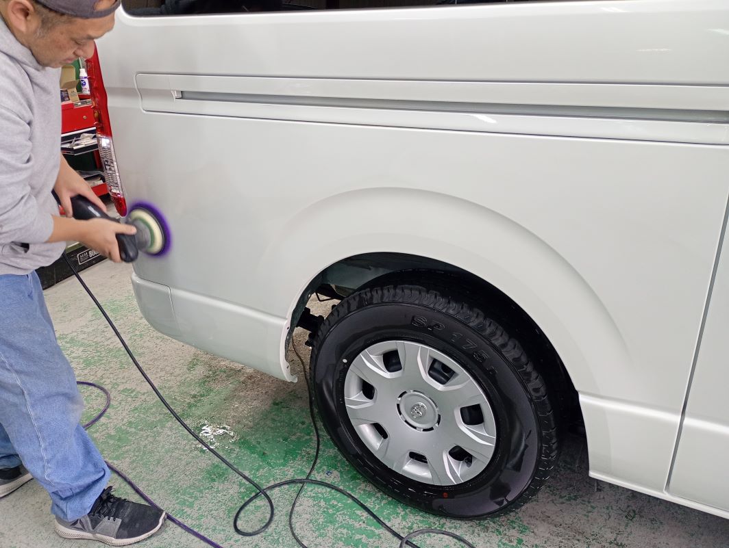 TOYOTA HIACE ボディー磨き施工 2026/03/30 ボディー磨きのご依頼をいただきました。 磨き前の洗車の様子。 磨きの様子。 磨き後の洗車の様子。 仕上がりの様子。 ご依頼いただきありがとうございました。