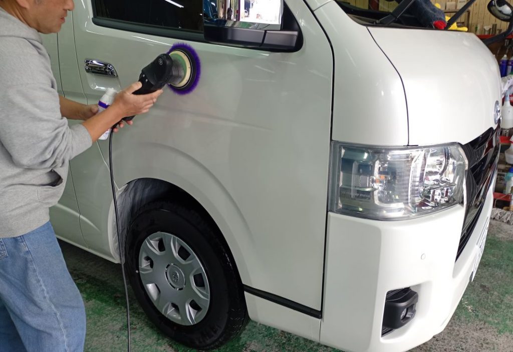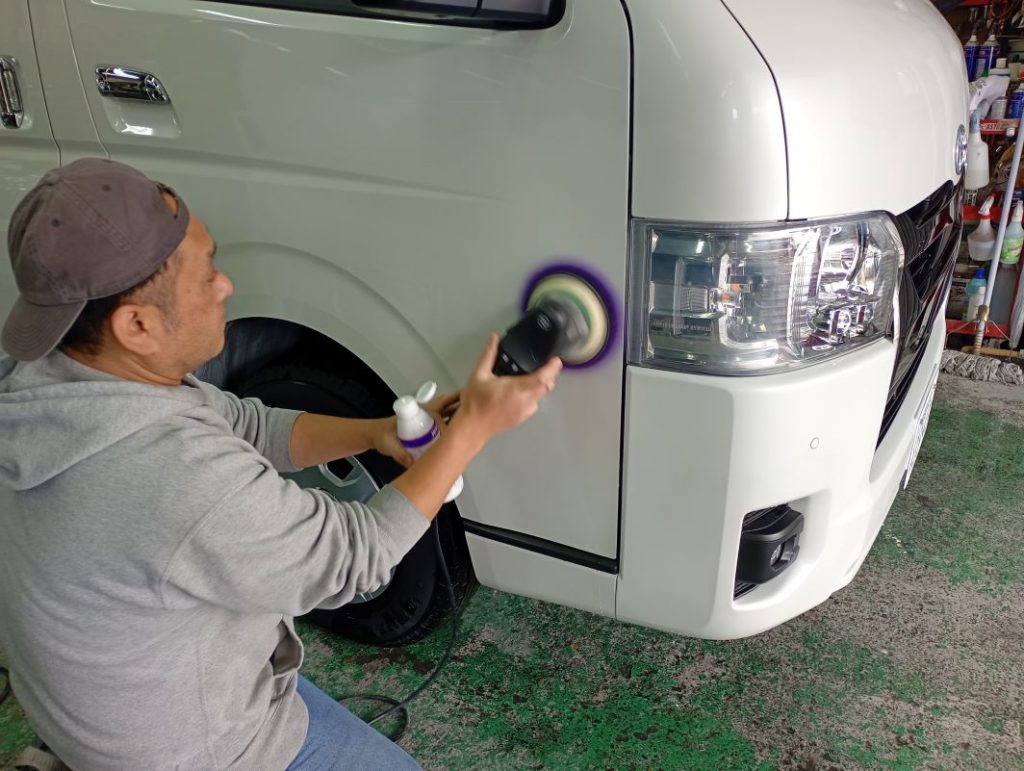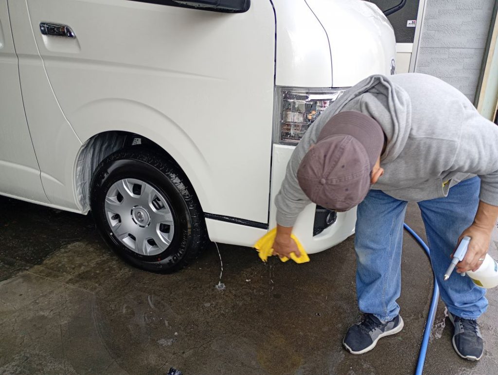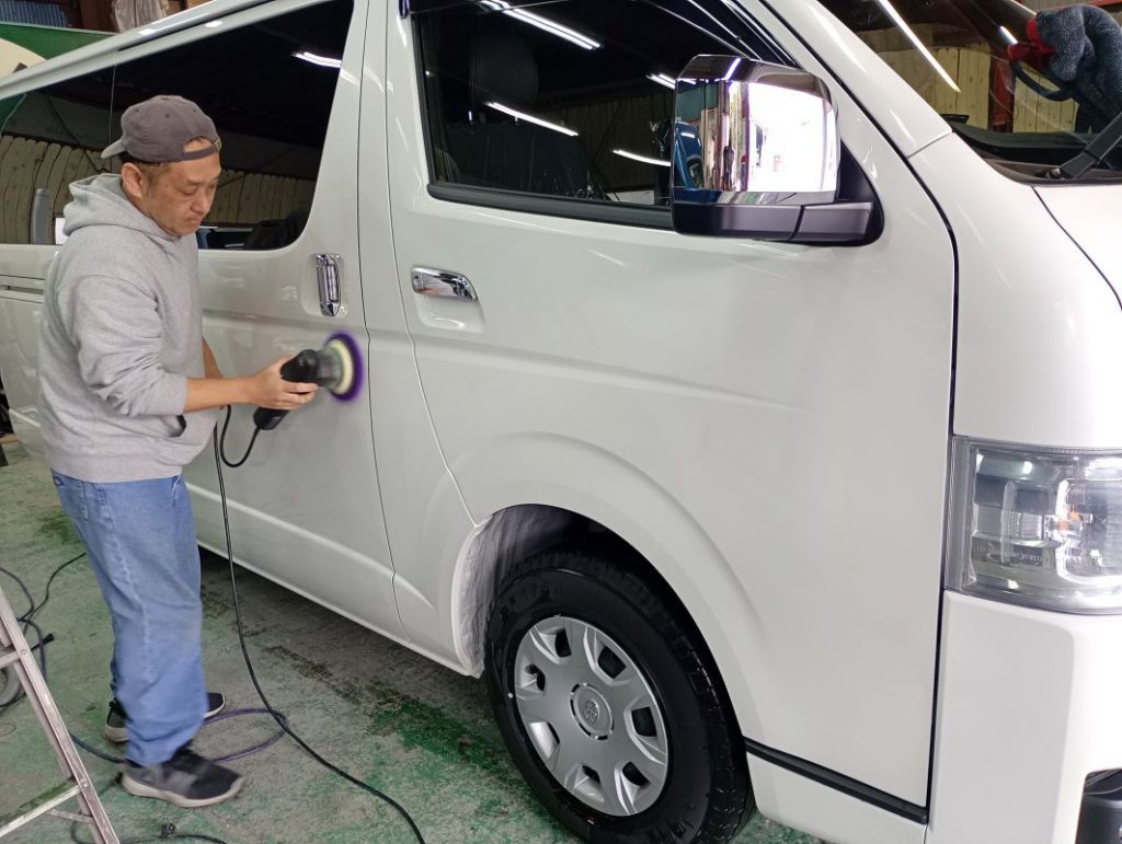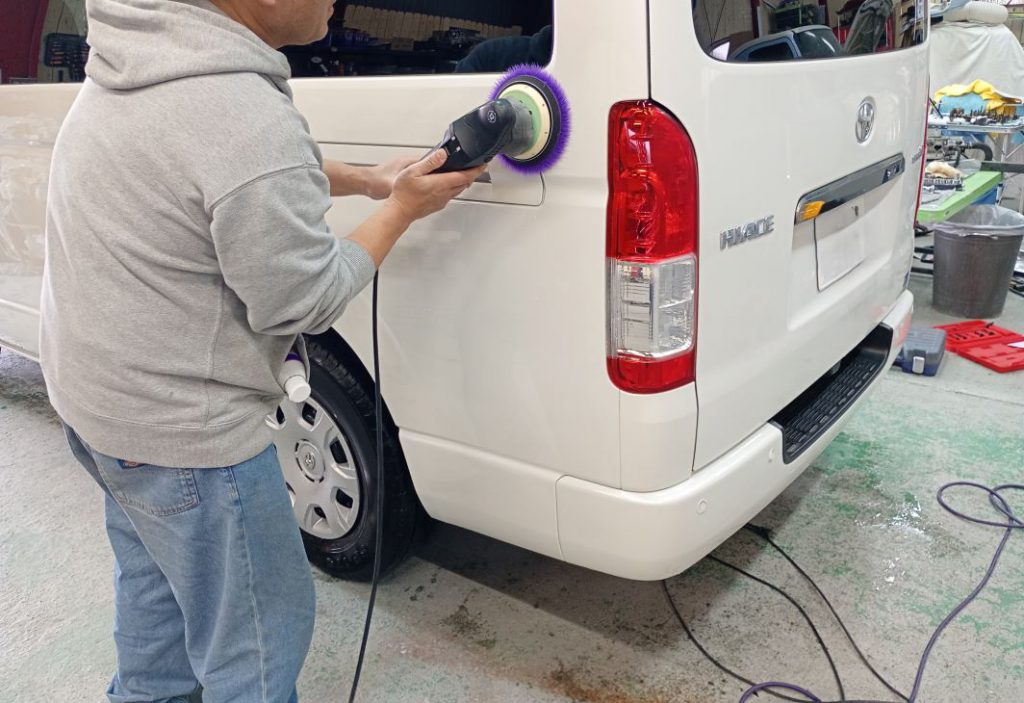 TOYOTA HIACE ボディー磨き施工 2026/03/30 ボディー磨きのご依頼をいただきました。 磨き前の洗車の様子。 磨きの様子。 磨き後の洗車の様子。 仕上がりの様子。 ご依頼いただきありがとうございました。