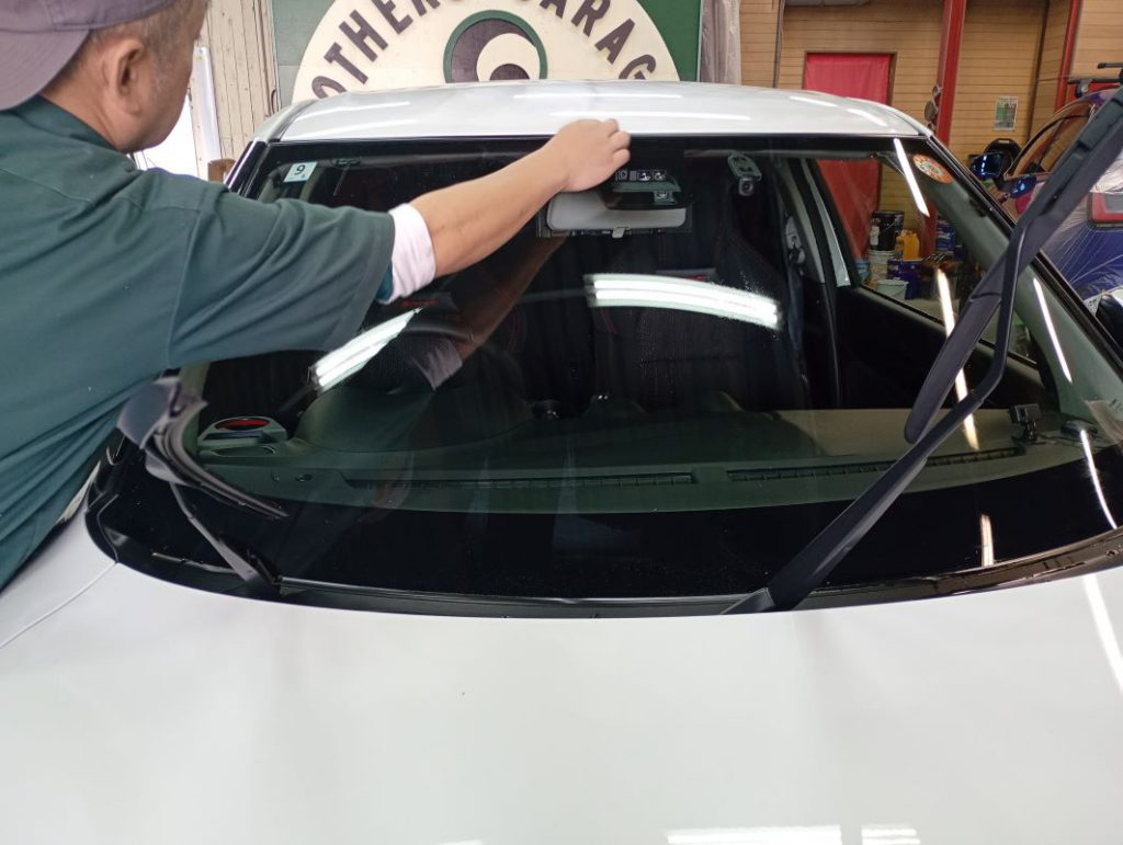 フロントガラスとフロントサイド2面、写真にはありませんがリアガラスにもコーティングしました。