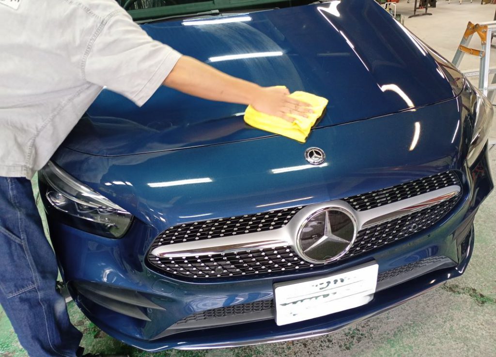 MERCEDES BENZ ボディーコーティング施工 2026/04/24 ボディーコーティングのご依頼をいただきました。 洗車後の磨きの様子。 磨き後の洗車の様子。 コーティング作業の様子。 仕上がりの様子。 ご依頼いただきありがとうございました。