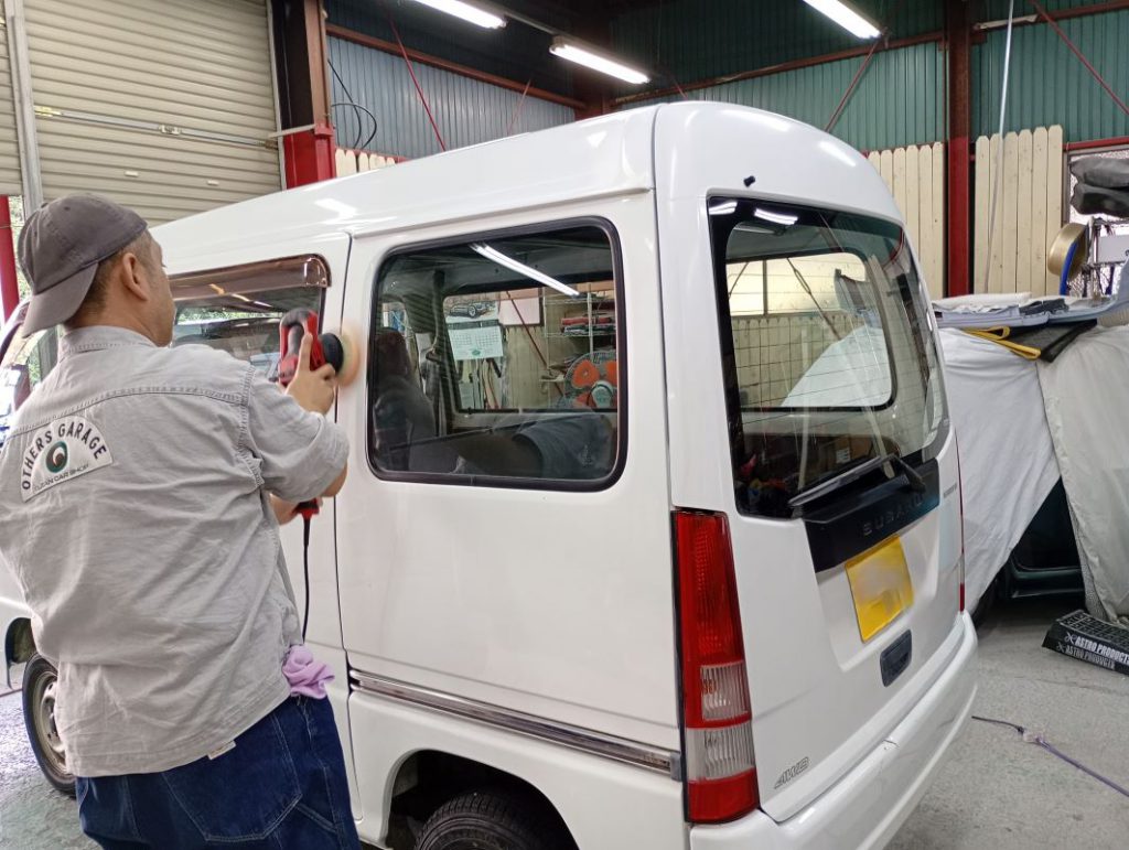 SUBARU SAMBAR ボディー磨き施工 2026/04/27 ボディー磨きのご依頼をいただきました。 磨き前の洗車の様子。 磨きの様子。 磨き後の洗車の様子。 仕上がりの様子。 ご依頼いただきありがとうございました。